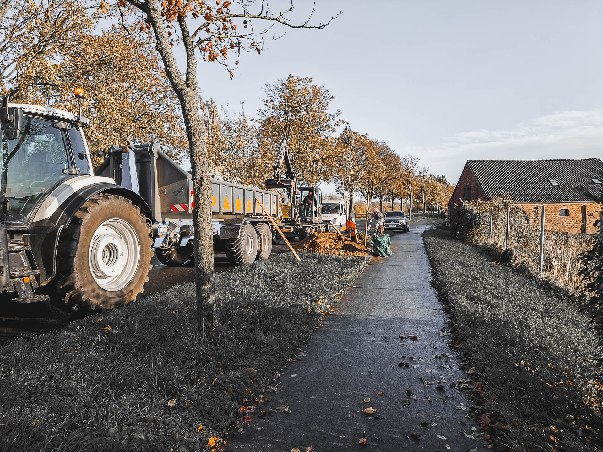Anlieferung von Jungbäumen für eine Straßenbankettbepflanzung